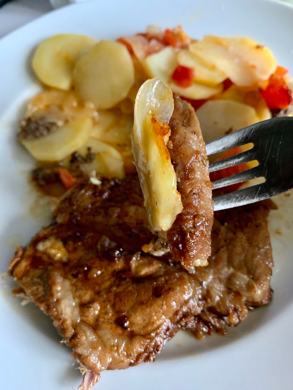 Diese Marinade hat mich umgehauen! Die Koteletts haben sich regelrecht (8 Stunden) vollgesaugt mit dem leicht säuerlichen Geschmack der Marinade. Passte perfekt zum Gratin und zu den Koteletts.
