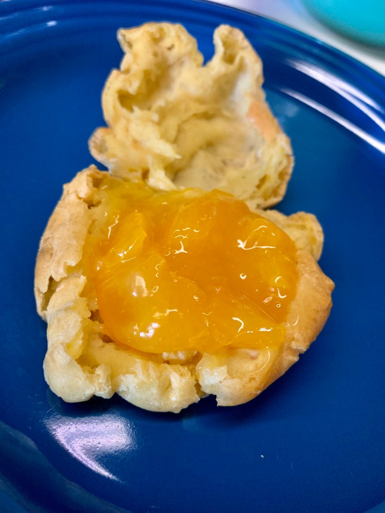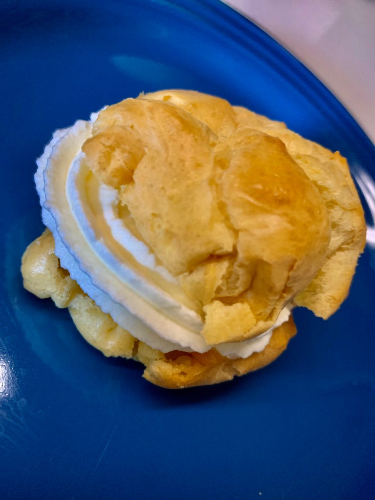 Ganz wichtig, sofort nachdem ihr die Windbeutel aus dem Ofen holt, schneidet ihnen den Deckel ab. Anschließend auf einem Kuchenrost erkalten lassen.
