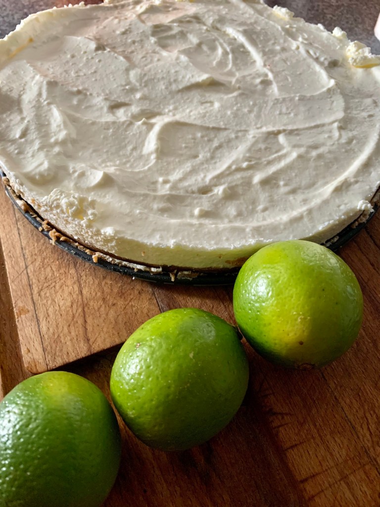 Zwei Limetten auspressen bis ihr ca. 50 ml Limettensaft habt. Sahne steif schlagen. In einer Schüssel nun den Schmand mit dem Frischkäse, dem Limettensaft und dem Puderzucker gut verrühren. Gelatine fix einrühren und dann die steif geschlagene Sahne unterheben. Die Masse nun gleichmäßig auf dem Keksboden verteilen und glatt streichen. Mehrere Stunden oder über Nacht (mit Frischhaltefolie abgedeckt) im Kühlschrank fest werden lassen.
