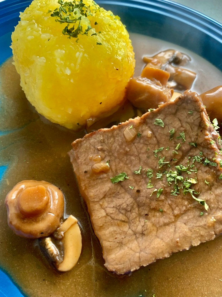 wir nähern uns dem Herbst und es wir höchste Zeit, den Schmortopf zu verwenden um darin leckere Schmorgerichte zu zaubern. Heute kommt deshalb Rinderbraten auf den Tisch. Es gibt viele verschiedene Arten, Rinderbraten zuzubereiten und heute zeige ich euch, wie ich ihn gerne schmore.